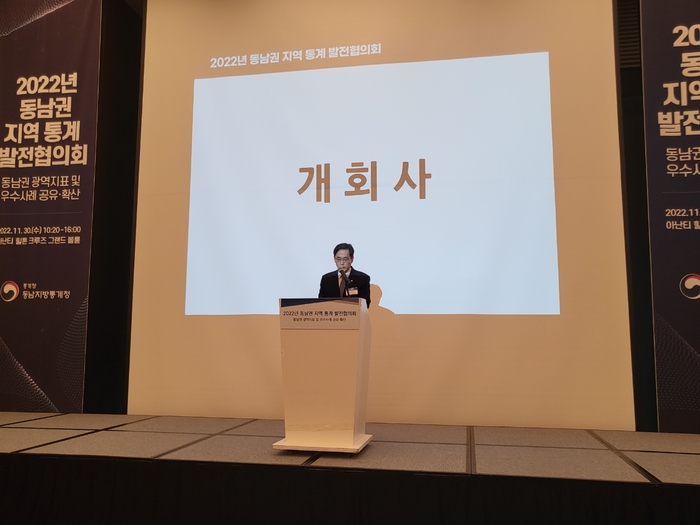 ▲ 동남권 지역통계 발전협의회에서 개회사를 하고 있는 한훈 통계정장 ©김중건