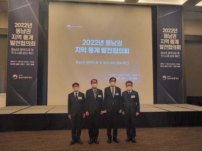 동남지방통계청은 30일 오전 부산시 해운대구 아난티힐튼에서 '2022년 동남권 지역통계 발전협의회'를 열었다. 이날 협의회에는 한훈 통계청장, 지방자치단체, 학계, 연구기관 등이 참석했다.