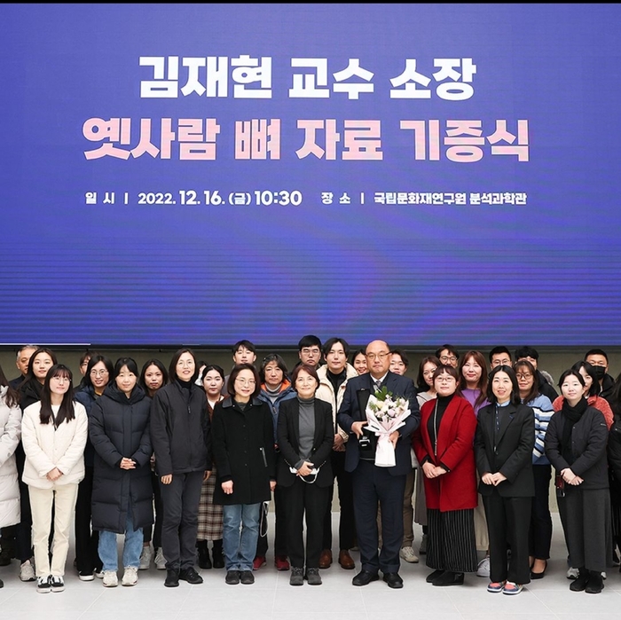 국립문화재연구원(원장 김연수)은 대전시 유성구 연구원 분석과학관에서 김 원장을 비롯 연구원 관계자 등이 참석한 가운데 지난 16일 ‘김재현 교수 소장 옛사람 뼈 자료 기증식’을 갖고 김 교수에게 감사패를 전달했다.