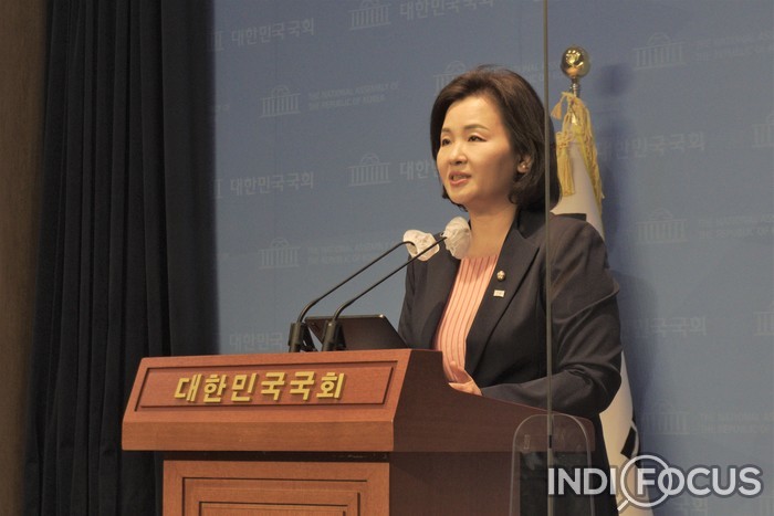 ▲ 이수진 민주당 원내대변인이 국회 소통관에서 현안 관련 브리핑을 하고있다. © 이태훈 기자