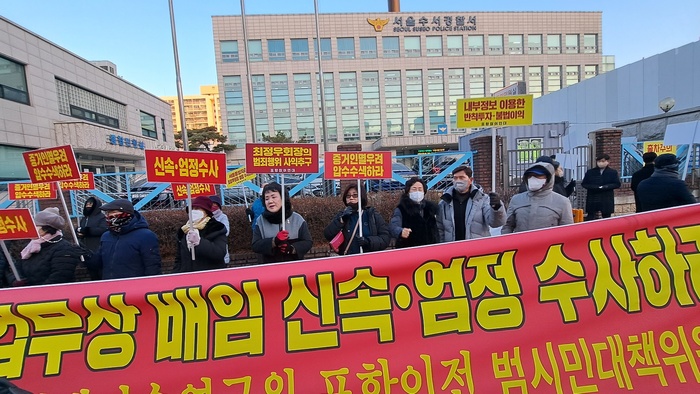 - 포항시민들 상경, 수서 경찰서 찾아 최정우 회장 수사 촉구 시위