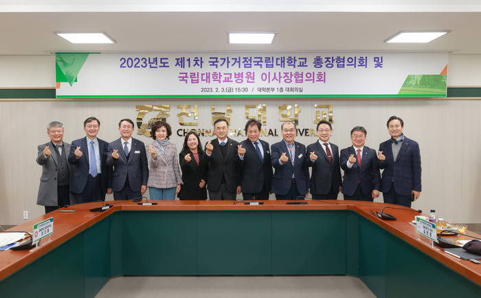 국가거점국립대학교 총장협의회(회장 차정인 부산대학교 총장)가 부산대학교 주관으로 지난 3일 오후 전남 전남대학교 대학본부 1층 대회의실에서 「2023년 제1차 정기회의」를 개최했다고 6일 밝혔다.