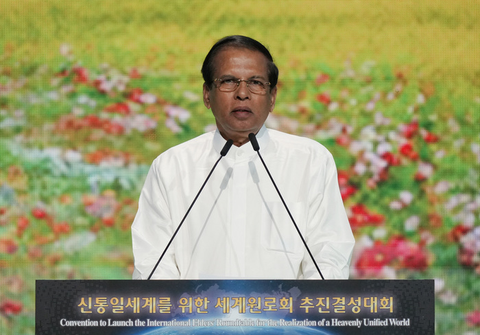 이날 행사를 위해 한국을 방문한 마이트리팔라 시리세나 전 스리랑카 대통령은 환영사를 통해 “원로 인구는 지난 10년간 점진적으로 증가해 왔으며, 최근 연구에서 원로들이 세계 지리, 문화, 정치 모든 면에 영향을 미치고 있다”며, “청년들과 성인들은 비전과 열정을 가지고 있지만, 원로들은 경험과 지식으로 그들에게 길을 열어줘야 한다”고 했다. 이어 “우리 사회의 원로들과 성인, 청년들의 항구적 평화와 번영을 위한 합작활동이 매우 중요한 역할을 할 것이며, 세계원로회가 세계와 한반도의 평화 프로세스에 큰 영향을 미치고 세계 정치 시나리오에도 긍정적 영향을 미칠 것”이라고 강조했다.