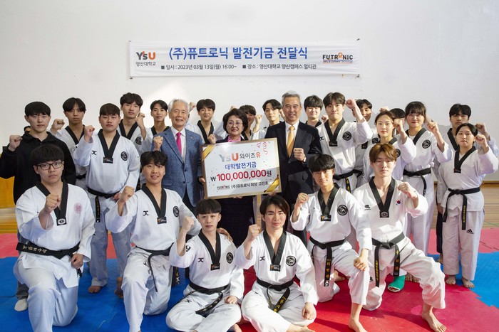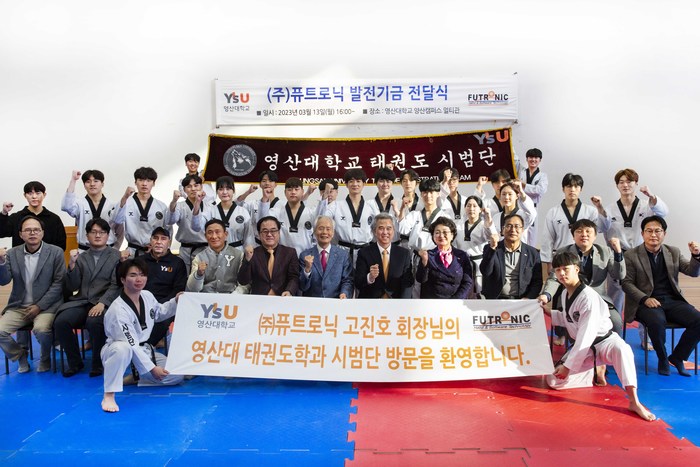 전달식 행사는 대학발전기금 증서 전달, 양산캠퍼스 체육실습실 및 태권도학과 훈련시설 탐방, 태권도학과 시범단의 공연, 단체 사진 촬영 등의 순서로 진행됐다. 영산대는 이 기부금을 태권도학과 시범단 학생의 장학금과 대학발전기금 등에 사용할 계획이다.