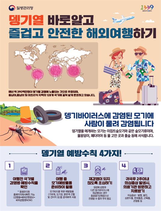 질병관리청은 동남아시아 방문자에서 뎅기열 및 치쿤구니야열 지속 발생에 이어, 최근 올해 첫 지카바이러스 감염증 환자도 확인됨에 따라 동남아시아 방문 시 모기매개 감염병에 감염되지 않도록 예방주의를 당부하였다.
