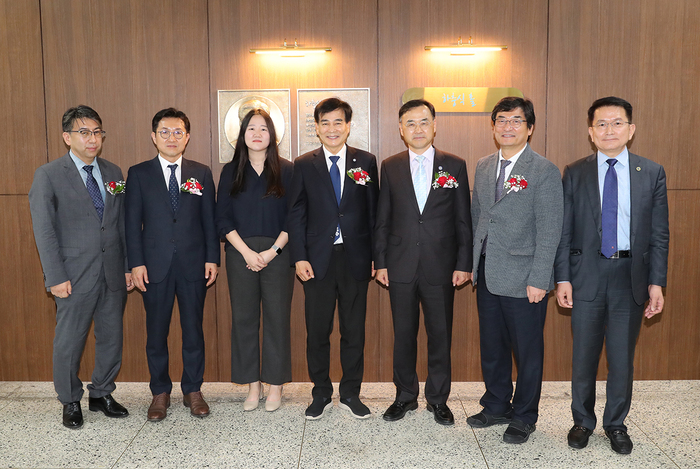 ▲ 설명: 왼쪽부터 윤석찬 부산대 법학전문대학원장, 하충식 창원한마음병원 이사장, 차정인 부산대 총장 © 김중건