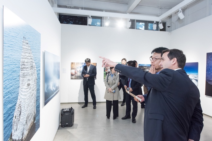 르노코리아자동차(대표이사 스테판 드블레즈)가 부산시의 2030세계박람회 유치를 지원하기 위해 부산으로 초청한 프랑스 출신의 세계적인 여행사진작가 토마스 구아스크(Thomas Goisque)의 사진전 개최식이 10일 부산 프랑스문화원 아트 스페이스에서 진행됐다.