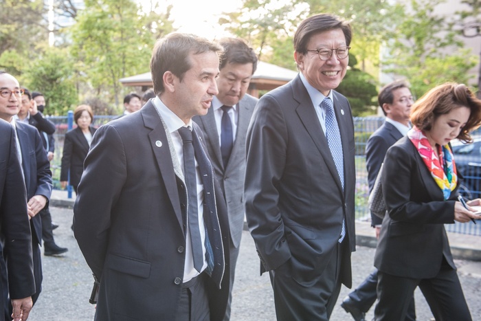 르노코리아자동차 스테판 드블레즈 사장은 축사를 통해 지난해 구아스크 작가를 만나 부산 방문을 권유하던 장면을 떠올리면서 부산시의 2030세계박람회 유치를 응원하며 르노코리아자동차는 이를 위한 지원을 아끼지 않겠다고 말했다.