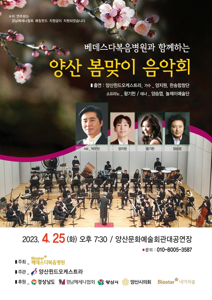 양산 베데스다복음병원과 함께하는 특별연주회4월 27일 양산문화예술회관에서 양산시민을 위한 무료 봄 음악회 개최