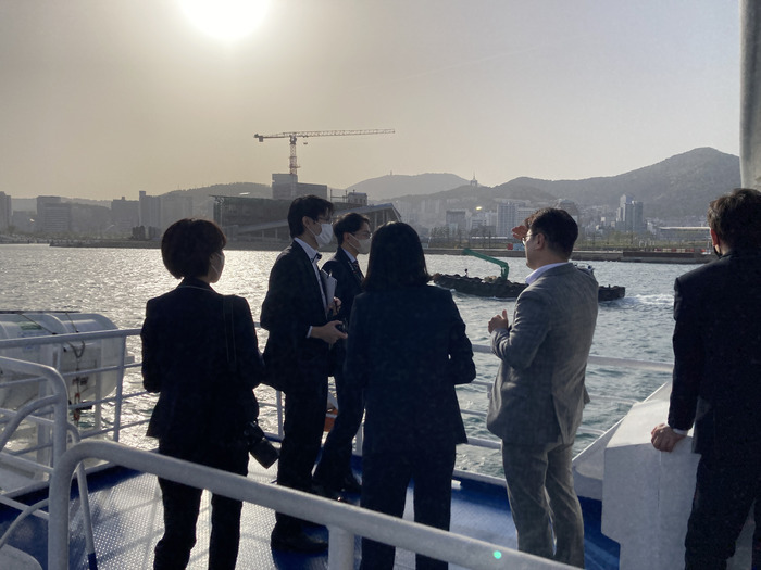일본 전문지 기자단은 항만 안내선을 탑승해 일본화물이 주로 처리되는 북항 항만 운영 현장을 살펴보고, 2030 부산 엑스포 개최 준비상황 등에 대한 관계자의 설명을 듣는 시간을 가졌다.