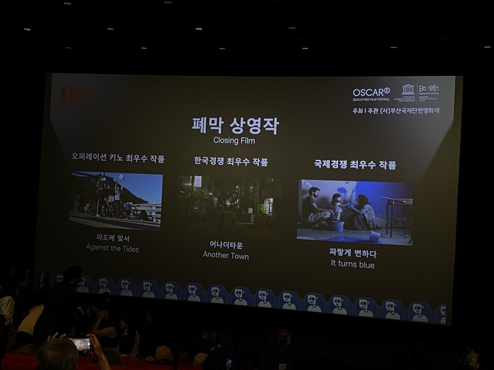 폐막식은 7일간의 영화제 현장을 담은 하이라이트 영상을 시작으로 총 13개 부문의 수상작이 발표되었다. 치열한 심사를 거쳐 선정된 경쟁 부문 최우수작품상은 국제경쟁에서 <파랗게 변하다>(샤디 카람루디 감독), 한국경쟁에서 <어나더타운>(윤동기 감독), 오퍼레이션 키노에서 <파도에 맞서>(최준서 감독-동의대학교)가 수상하는 영예를 누렸다.