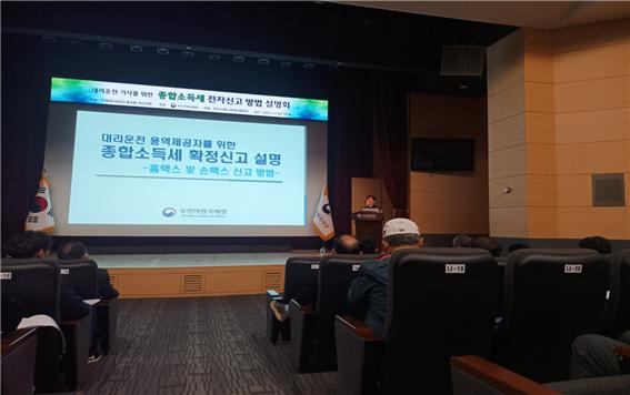 이 날 설명회에서 부산지방국세청은 다양한 소득공제와 세액공제에 대해 설명하고 질의 응답의 시간을 통해 대리운전기사들의 종합소득세 신고에 대한 궁금증을 해소했다.