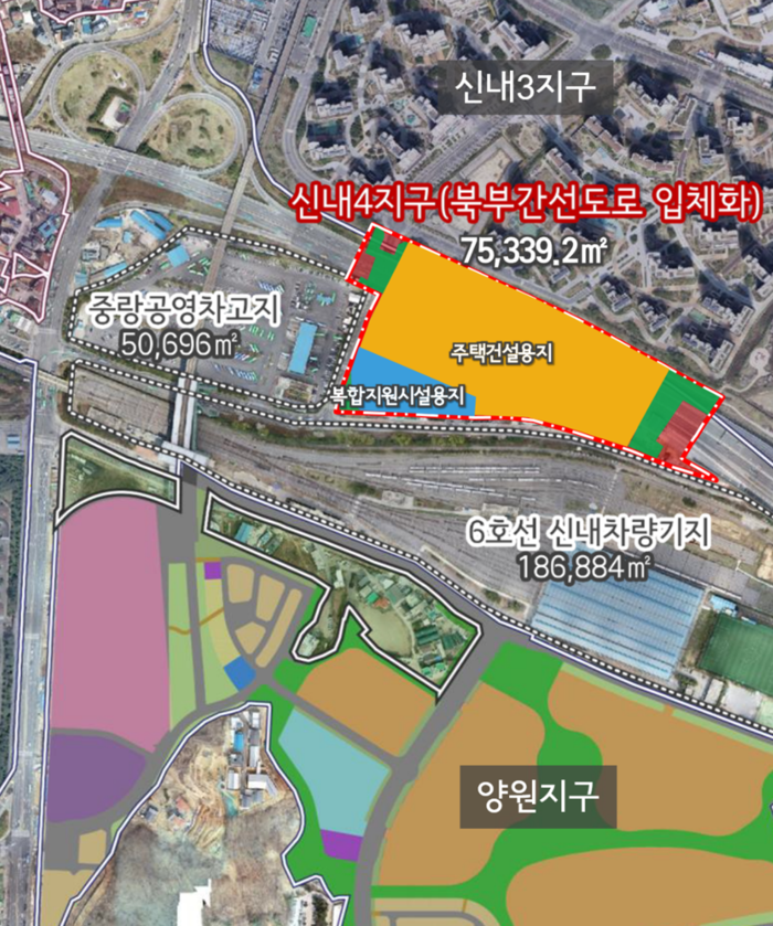 우회전차로 신설공사가 진행 중인 신내 차량기지 일대는 양원, 신내2‧3‧4지구 등 공공주택사업이 활발히 추진되고 있으며, 중랑 공영차고지 개발을 위한 입체‧복합화 사업을 총괄할 수 있는 통합개발 마스터플랜도 수립 중인 상황이다.