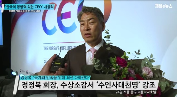 정 회장은 지난 5월 24일 서울 중구 더플라자 호텔에서 진행된 TV조선 주최 '한국의 영향력 있는 CEO' 시상식에서 주용중 대표이사로부터 수상했다.