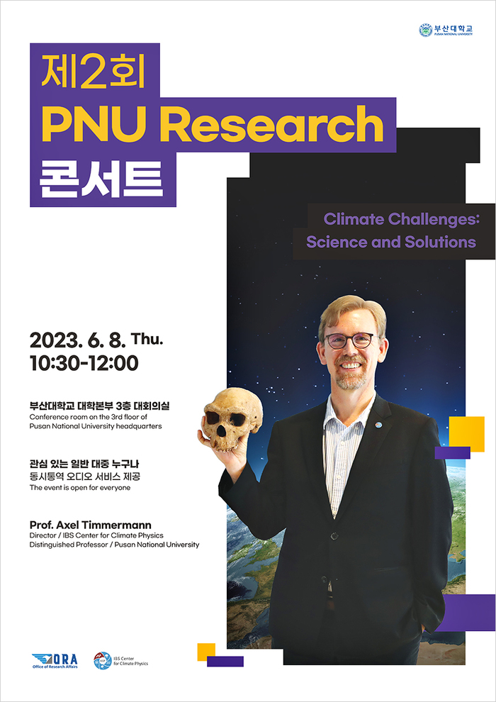 부산대학교(총장 차정인) 연구처는 세계적인 연구성과를 창출한 부산대 연구자와 함께하는 대중 학술강연인 「제2회 PNU Research(리서치) 콘서트」를 마련, 8일 오전 10시 30분부터 90분간 대학본부 3층 대회의실에서 <Climate Challenges: Science and Solutions(기후문제: 과학과 해결책)>를 주제로 개최한다고 7일 밝혔다.