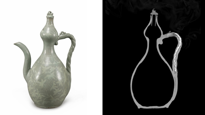![]() ▲ 청자 상감 포도형 표형 주자 사진(좌), CT사진(우). © 김중건 |