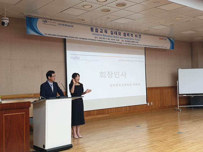한국특수교육학회(학회장 박재국·부산대 특수교육과 교수)가 지난 17일 부산대학교 성학관에서 「한국특수교육학회 2023 하계학술대회」를 열고 통합교육(장애학생을 일반학교에서 비장애 또래학생들과 함께 가르치는 교육) 대상 학생에게 초점을 맞춰 관계자와 구성원 간 이해와 협력적 교육이 보다 강화된 특수교육의 미래 비전을 모색하는 뜻깊은 학술행사를 가졌다고 19일 밝혔다.