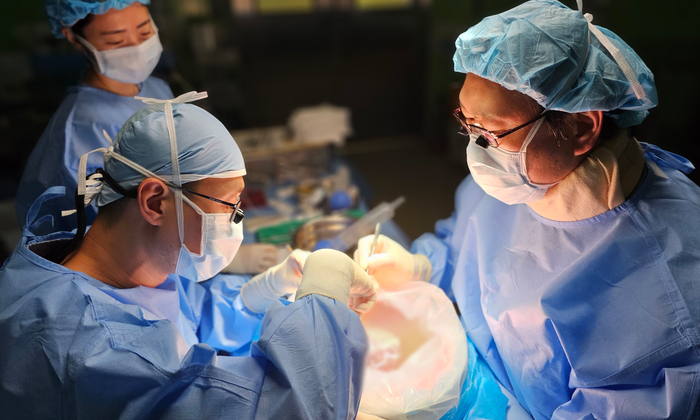 ▲ 양산부산대학교병원 외과 이태범 교수(우측) 외과 류제호 교수가 간 이식 수술을 하고 있다. © 김중건