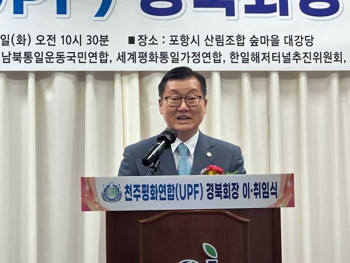 천주평화연합(UPF) 대구·경북지회는 지난 20일 오전 포항시 산림조합 숲마을 대강당에서 내외귀빈 150여 명이 참석 한 가운데 변사흠 회장과 이정문 회장의 이·취임식을 개최했다.