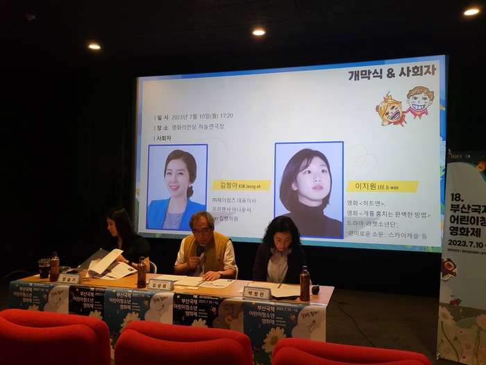 부산국제어린이청소년영화제는 21일 오후 3시 부산시 해운대구 영화의전당 인디플러스에서 기자간담회를 열고 제18회 부산국제어린이청소년영화제 개최를 알렸다. 김상화 부산국제어린이청소년영화제 집행위원장과 장슬기·박정민 부산국제어린이청소년영화제 프로그래머는 올해 BIKY는 ‘아이에겐 감성을, 어른에겐 감동’을 모토로 ‘전쟁은 싫어! 평화가 좋아!’라는 주제로 마련된다고 밝혔다.