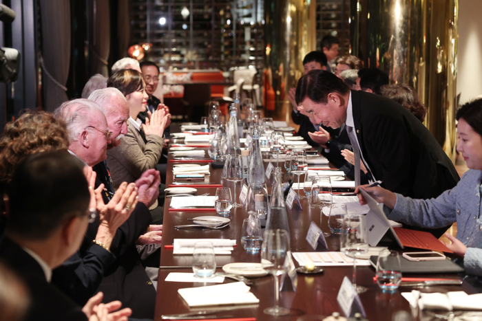 뉴질랜드를 공식 방문 중인 김진표 의장은 26일 오후(현지시간) 오클랜드 SO호텔에서 한국전 참전용사들을 초청해 간담회를 열었다. 이 자리에는 참전용사 제임스 패트릭 존스(91세), 피터 무어(89세) 및 미망인 수잔 헤이먼(79세) 등 한국전 참전용사 및 가족 총 10여 명이 참석했다.