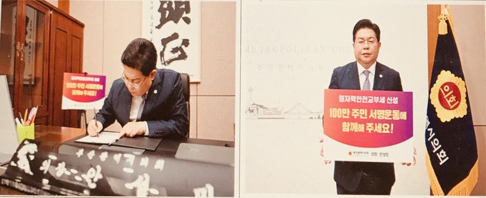 부산광역시의회 안성민 의장은 29일 원자력안전교부세 신설을 위한 100만 주민 서명운동 SNS 챌린지에 동참했다.