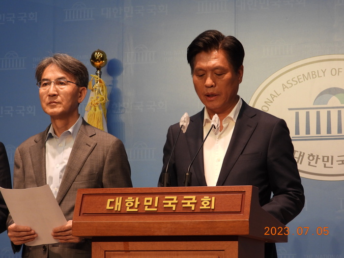 ▲ 국회 과학기술정보통신위원회(이하 과방위) 조승래 의원이 5일 국회에서 KBS 수신료 분리징수 찰회를 촉구하는 성명서를 발표하고 있다./사진 김은호 기자 © 인디포커스