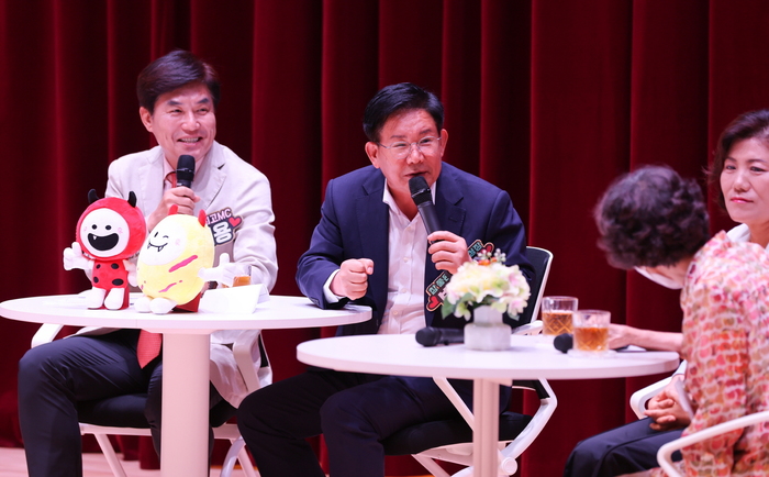 ▲ 효도밥상 관계자들과 이야기 나누는 박강수 구청장 © 인디포커스