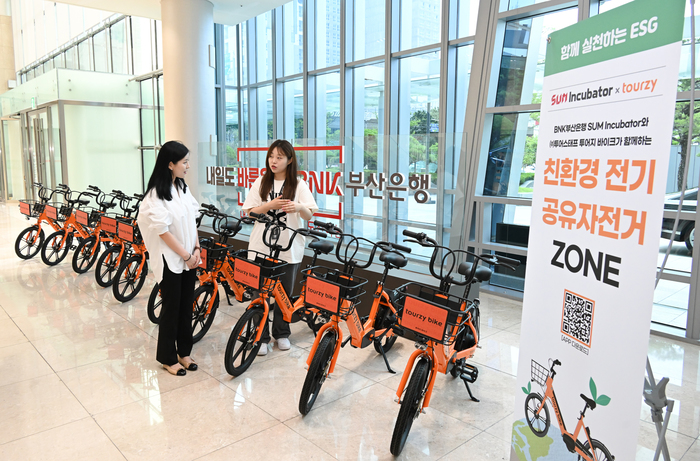 BNK부산은행(은행장 방성빈)은 지역 친환경 스타트업 ‘투어스태프’가 신규 운영하는 전기 공유 자전거를 7월 6일~7일 양일간 부산은행 본점 1층에 전시하기로 했다고 6일 밝혔다.