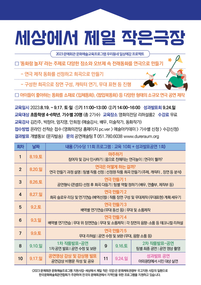 영화의전당은 문화예술교육 프로그램 <세상에서 제일 작은극장> 교육생을 모집한다.
