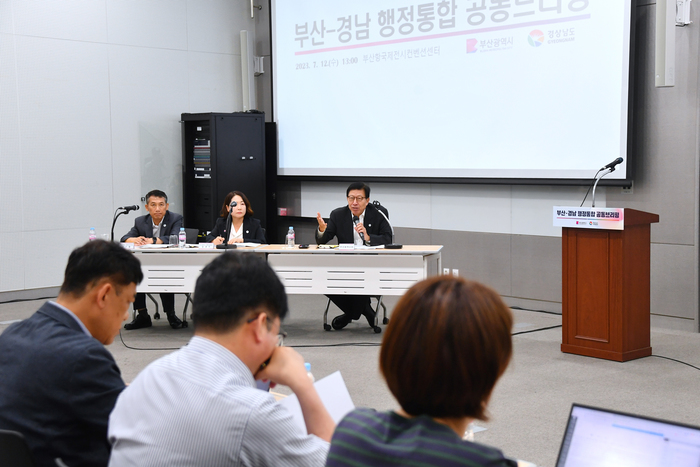 부산광역시(시장 박형준)와 경상남도(도지사 박완수)는 12일 오후 1시 부산항국제전시컨벤션센터에서 「부산-경남 행정통합 여론조사 결과」를 발표하고 후속 계획에 대한 공동입장을 밝혔다.