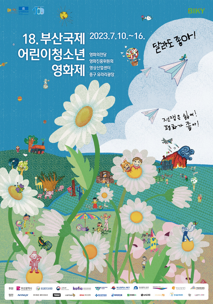 18회 부산국제어린이청소년영화제(BIKY), 주제 '전쟁은 싫어! 평화가 좋아! 부합된 영화와 프로그램 눈길평화 포스터 공모 시상식, 부마항쟁 특별초청 '채널 1610' 특별전 대담에 평화통일 전문가 초청 러-우 전쟁 전망2023 제18회 부산국제어린이청소년영화제의 주제는 '전쟁은 싫어! 평화가 좋아!'이다.