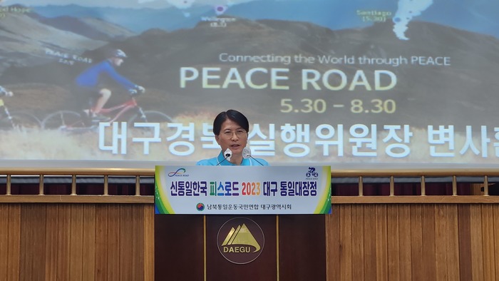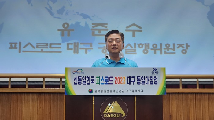 유준수 대구. 경북 공동 실행위원장은 대회사에서 "위기에 처해있는 남북관계와 국제정세 속에 피스로드 운동은 새로운 희망이 되고 있다고 강조하며 오늘 우리 마음속에 통일 의지를 다지는 시간이 되고 그 염원이 모여 통일의 그 날이 하루속히 오길 바란다"라고 말했다.