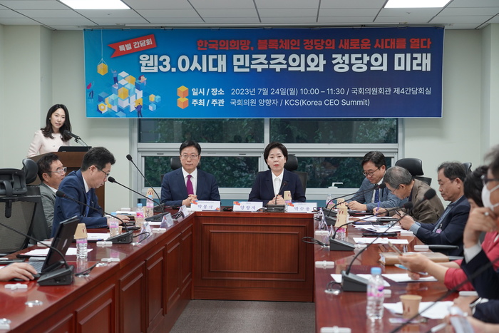 양향자 의원 (광주 서구을) 은 24 일 국회에서 <웹 3.0 시대 민주주의와 정당의 미래> 특별간담회를 개최했다고 밝혔다 . 부제는 <한국의 희망, 블록체인 정당의 새로운 시대를 열다> 이다 .