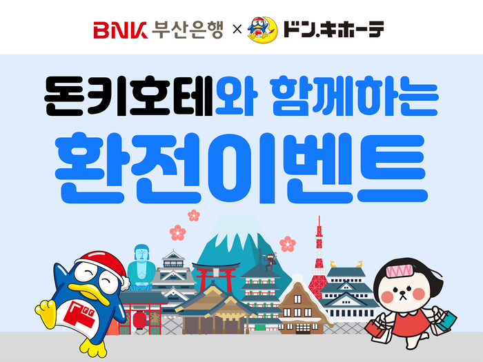 BNK부산은행(은행장 방성빈)은 부산은행 모바일뱅킹 및 인터넷뱅킹 이용 고객을 대상으로 ‘돈키호테와 함께하는 환전 이벤트’를 오는 12월 31일까지 실시한다고 1일 밝혔다.