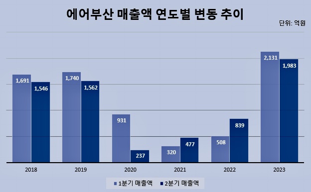 한편, 에어부산은 지난 1분기 매출 2,131억 원, 영업이익 478억 원, 당기순이익 157억 원을 기록하며, 창사 이래 분기별 최대 매출과 2019년 1분기 이후 16분기 만에 흑자를 기록한 바 있다.