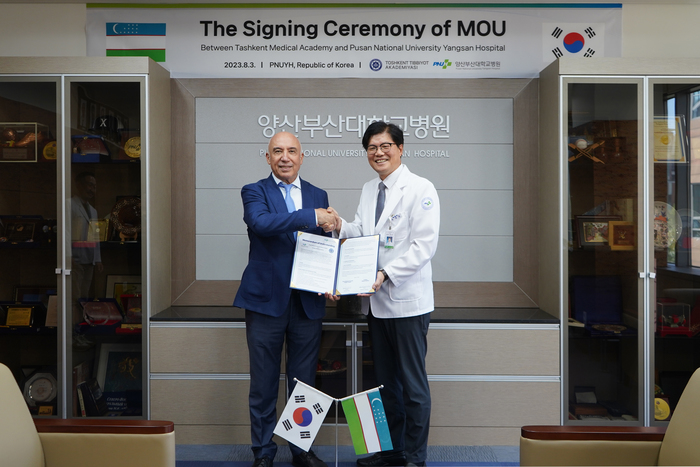 양산부산대병원(병원장 이상돈)은 지난 8월 3일 우즈베키스탄 국립 타슈켄트 의과대학(Tashkent Medical Academy)과 의료협력 양해각서(MOU)를 체결했다. 이 체결은 양산부산대병원과 타슈켄트 국립의과대학이 앞으로 보건의료분야의 다양한 협력을 추구하고자 하는 공동의 의지로 이루어진 것이다.