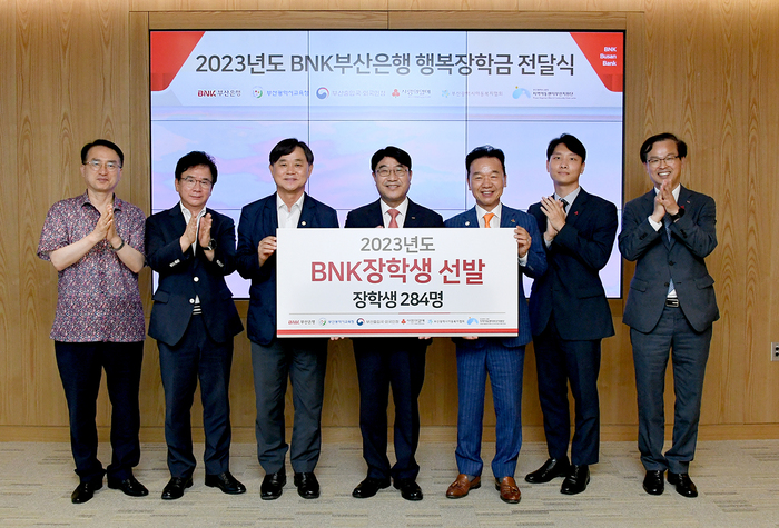 ‘BNK행복장학금’은 2007년부터 부산은행이 ‘BNK희망나눔재단’을 통해 매년 지역의 우수인재 육성과 모범학생 지원을 위해 추진 중인 장학 사업이다. 현재까지 8400여명의 학생에게 총 80억여원의 학업장려금을 지원했다.