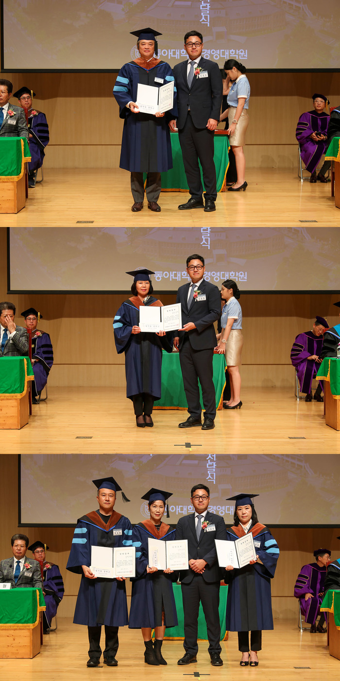 이 MBA총동문회장은 축사에서 “후배 여러분이 열린 마음을 가진 사람, 베풀 줄 아는 사람이 되길 바란다”며 “여러분 뒤엔 모교가 있다는 사실을 잊지 말고 동아인의 정신을 갖고 국가와 사회를 위해 헌신하는 동아인이 되길 바란다”고 말했다.