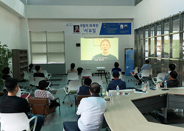 「8월의 화목한 ‘시’요일」은 부산대 도서관이 2019년부터 국립대학육성사업(REN) 지원을 받아 밀양시민을 위해 진행한 ‘사서와 함께하는 Reading & Watching’ 독서문화 프로그램의 일환으로 마련됐다.