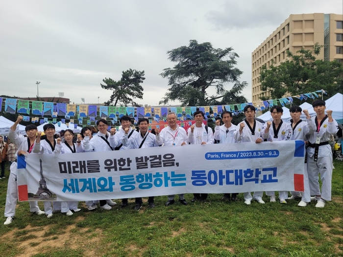 이 총장을 파리 파견 시범단장으로, 신정택 총동문회장을 후원단장으로 한 동아대 태권도 시범단은 지난달 31일 파리 국제대학촌 한국관 잔디마당에서 열린 ‘부산데이 인(in) 파리’ 개막식을 비롯 현지에서 국제박람회기구 대표들과 파리 시민, 현지 기관 관계자, 문화계, 한인회 인사 등을 대상으로 다양한 홍보활동에 참가했다.
