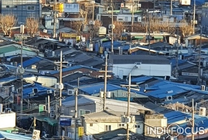 이 지역은 주거환경정비사업 지구지정이 되어 있는 곳으로 지역에서 개발추진위원회가 활발하게 활동하는 듯 보이지만 언제 개발이 이루어질지는 누구도 장담할 수 없는 상황에서 일부 주택 지붕은 1급 발암물질 함유량이 많다는 스레트로 형성된 곳들도 군데군데 볼 수 있는 모습이었다.