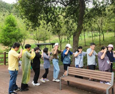 점심식사를 하고 오후에는 숲 해설가와 함께 치유의 숲을 걸으며, 숲 이야기 및 오감에 자극하는 등 경험하는 시간을 가졌다. 숲에 대한 소중함과 숲을 통한 힐링이 되는 시간을 가졌고, 타인들 간의 친밀감이 높아질 수 있는 계기가 됐다.