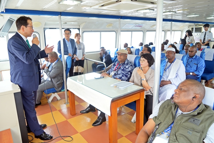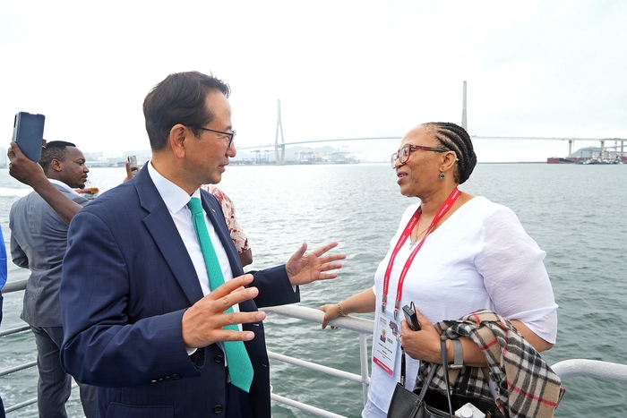 BPA 강준석 사장은 아프리카 정부 대표단과 함께 항만 안내선에 승선하여 세계 2대 환적항만인 부산항의 운영 현황을 설명하는 한편, 2030 부산 엑스포 개최 예정지인 북항 재개발사업 현장을 소개하였다.