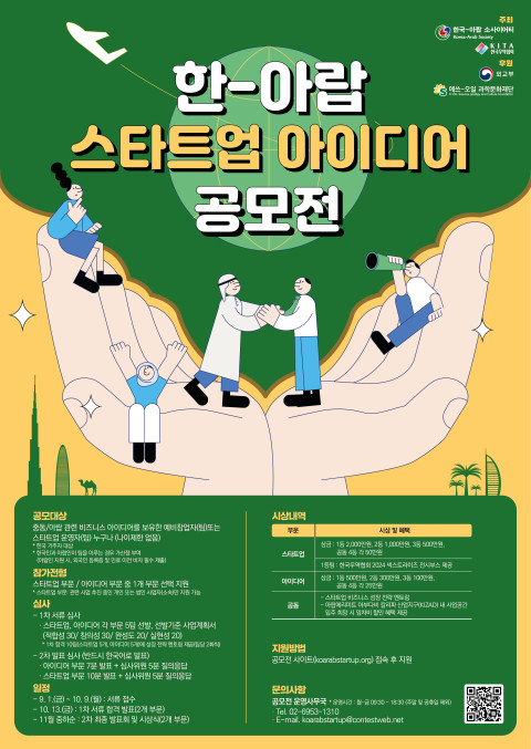 한국-아랍 소사이어티와 한국무역협회가 주최하는 ‘한-아랍 스타트업 아이디어 공모전’이 9월 1일부터 10월 9일까지 공식 홈페이지(koarabstartup.org)를 통해 마감까지 3주 정도 남은 현재 큰 관심 속에 접수를 진행하고 있다.