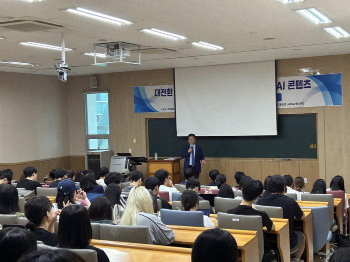 지난 20일 부민캠퍼스 종합강의동에서 열린 특강엔 정 원장과 윤 학장, 김대경 미디어커뮤니케이션학과장 등 사회과학대학 교원과 학부생, 대학원생 등 120여 명이 참석했다.