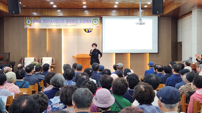 한반도 평화통일 하나님 중심으로 통일 성사 때만이 진정한 평화 온다윤정로 평화대사협의회 중앙회장 대구지역 신통일국론 초청 특강 펴" 한반도의 평화 통일은 인간중심 아닌 하나님을 중심으로 통일을 이룰 때만이 진정한 평화가 찾아온다"