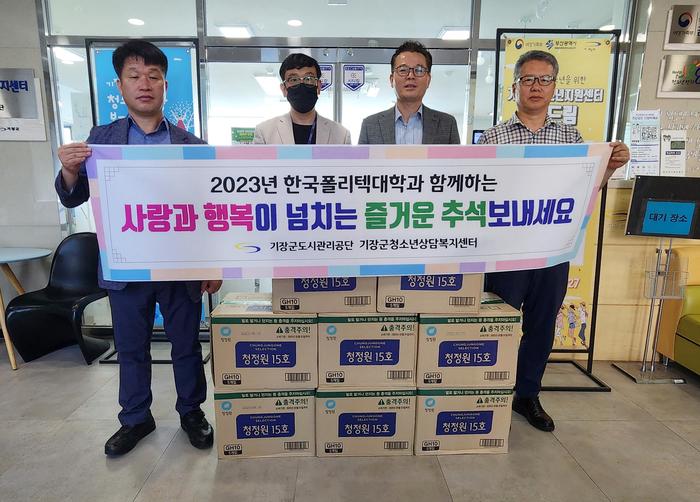 한국폴리텍대학 동부산캠퍼스(학장 황선구, 이하 동부산폴리텍)는 25일 추석을 앞두고 교직원들의 자발적 기부를 통해 마련한 물품을 기장군청소년상담복지센터에 기증했다고 밝혔다.
