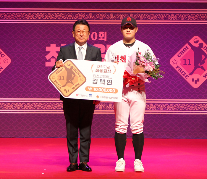 대선주조 조우현 대표는 “한국야구를 한 단계 발전시킬 인재들에게 꿈과 희망을 전할 수 있어 기쁘다. 김택연 군이 프로 무대에서도 눈부신 활약을 펼치길 바란다”고 말했다.