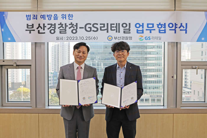 부산경찰청(청장 우철문)과 GS리테일 영남본부(상무 신단비)는 25일 부산경찰청에서 보이스피싱 등 범죄 예방을 위한 업무협약을 체결했다.